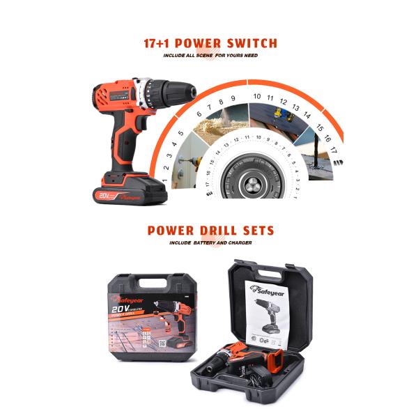 32N.M Cordless Impact Drill Machine 1500mAh Li-Ion 17+1 Torque Setting Images |